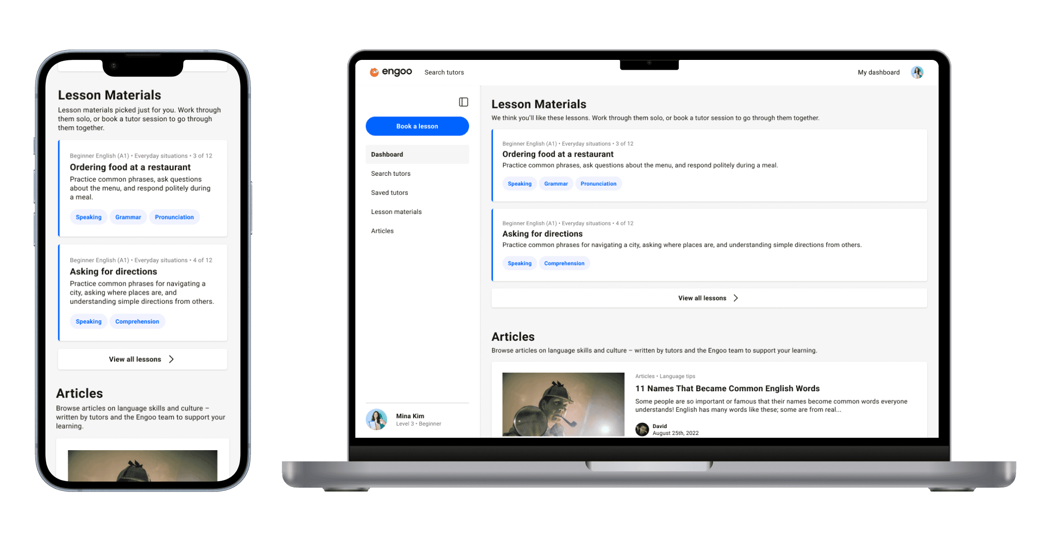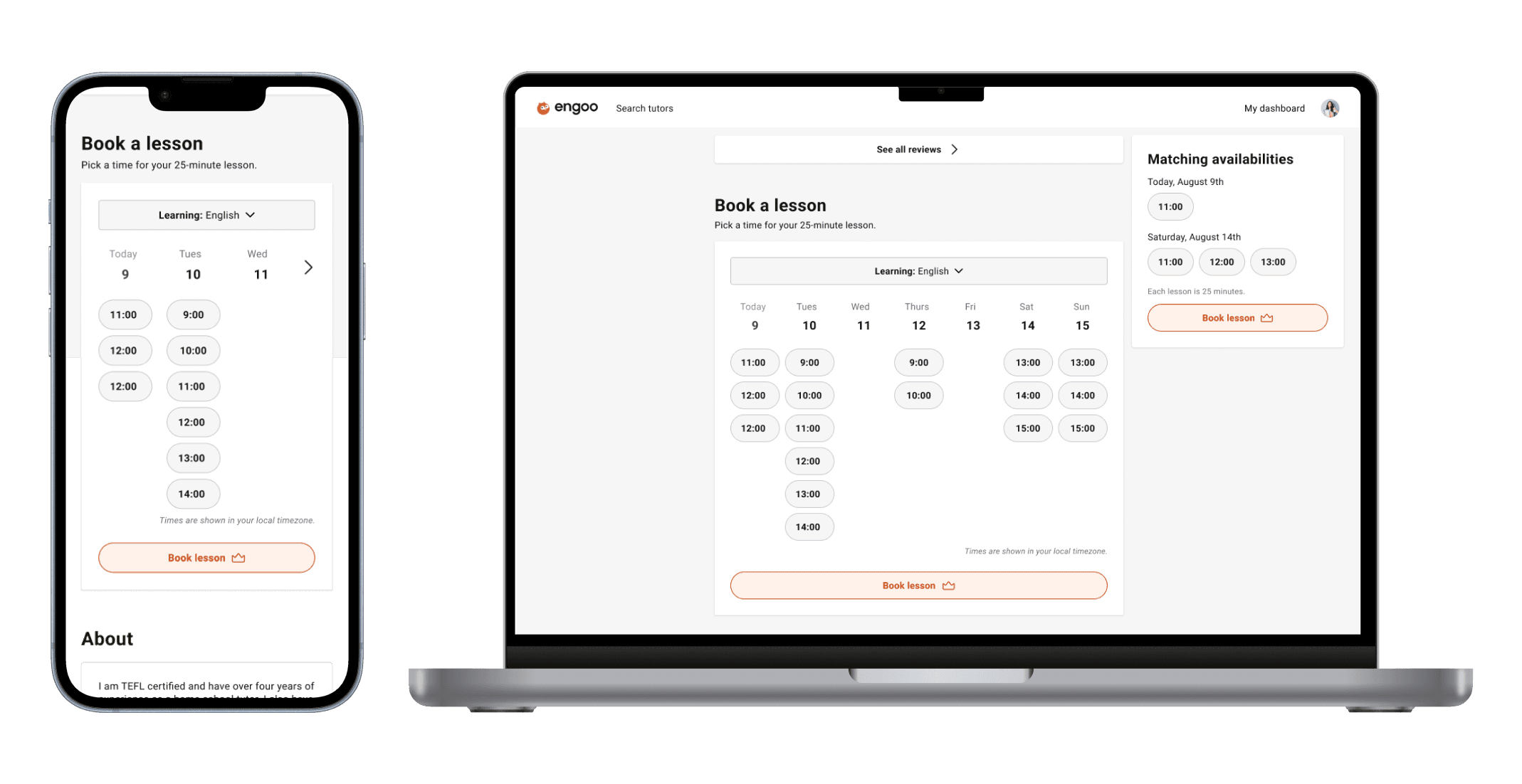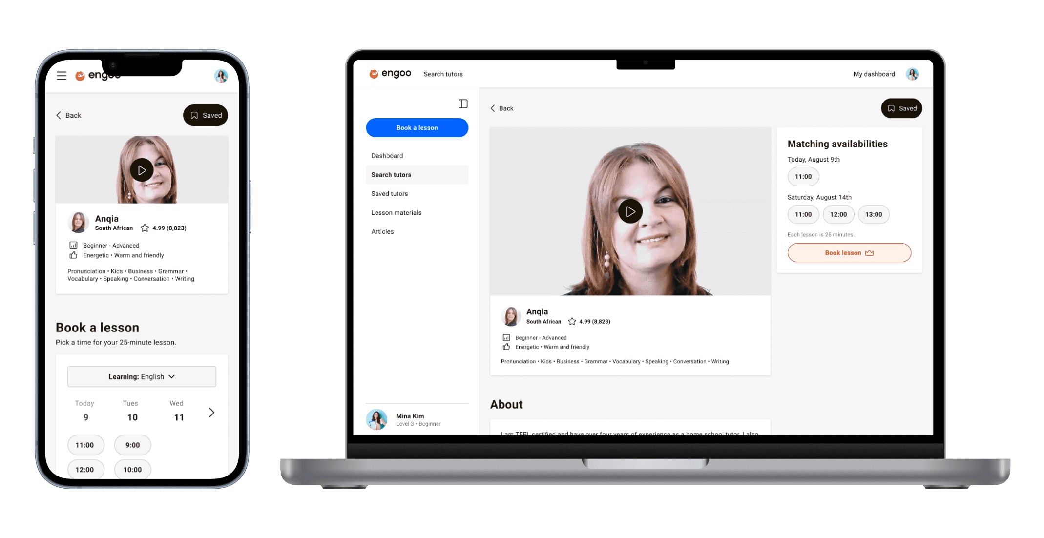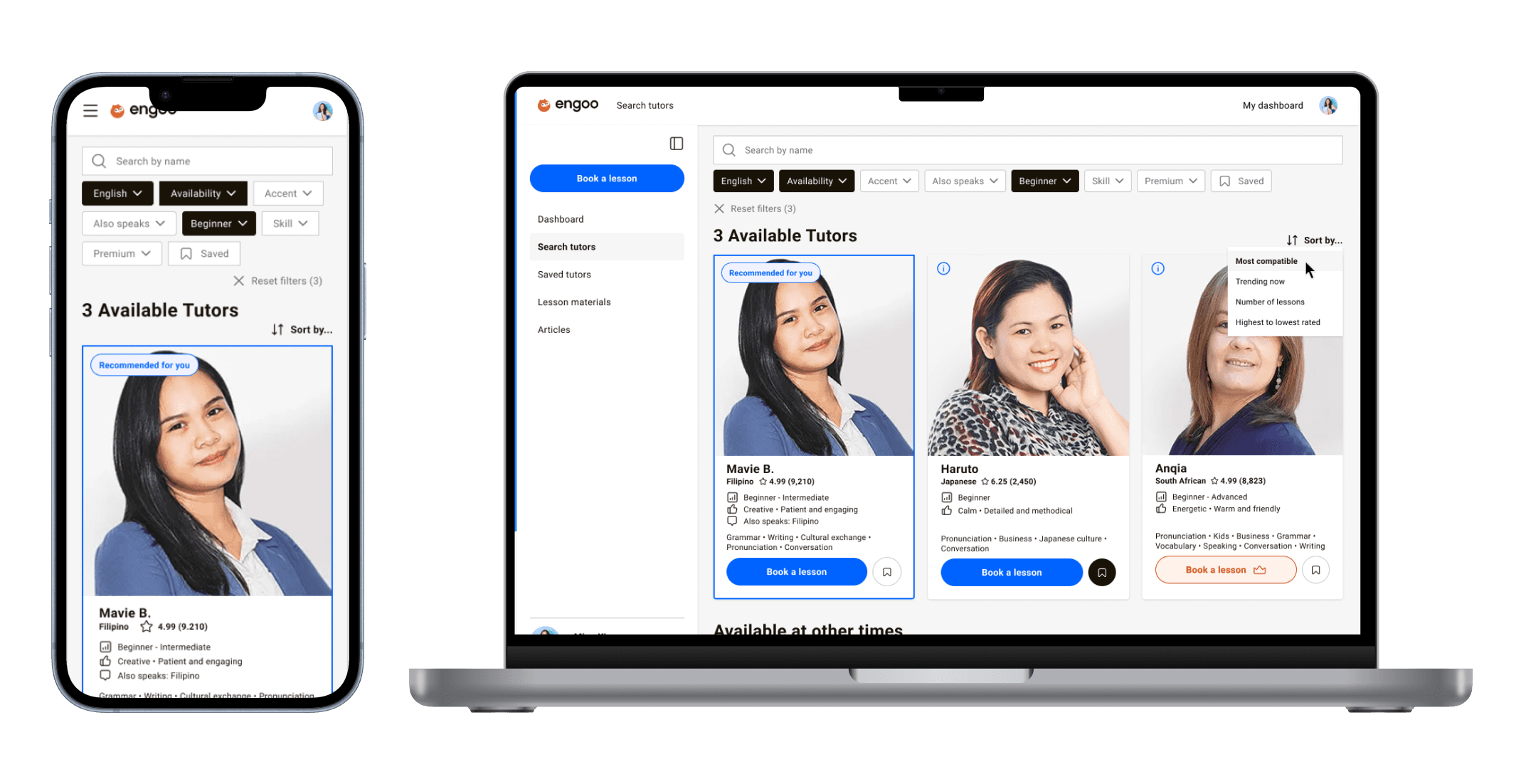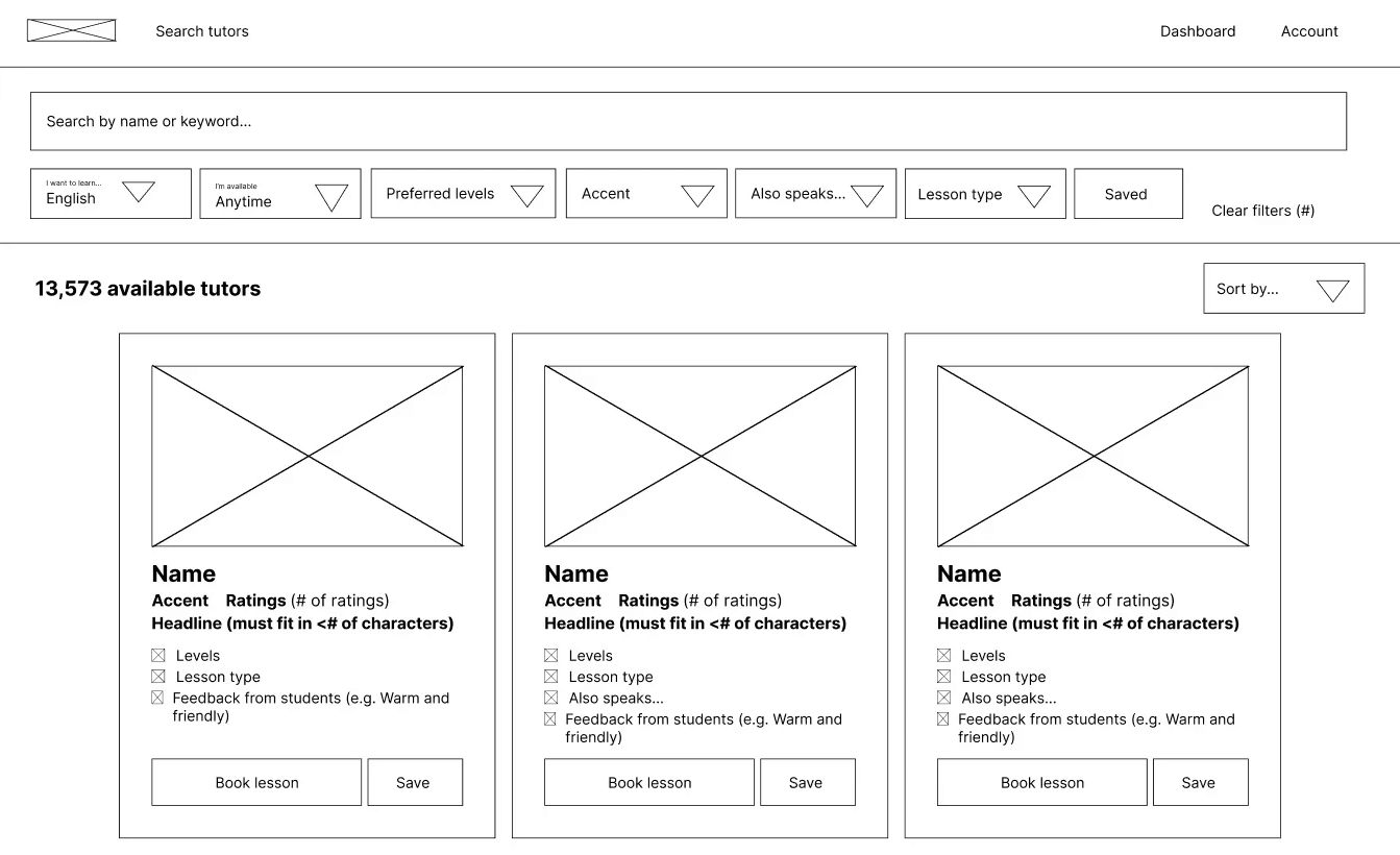 Filters were also refined to reflect how students evaluate tutors – adding level, skills, and accent, while removing less relevant options like age and gender.